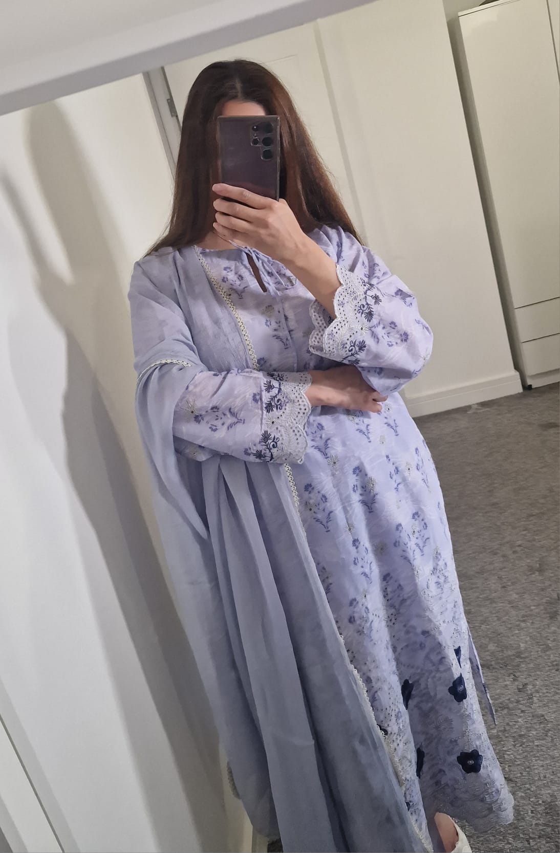 Shirt: Digitally Printed Premium Lawn with Chikankari embroidered front, back and sleeves.
